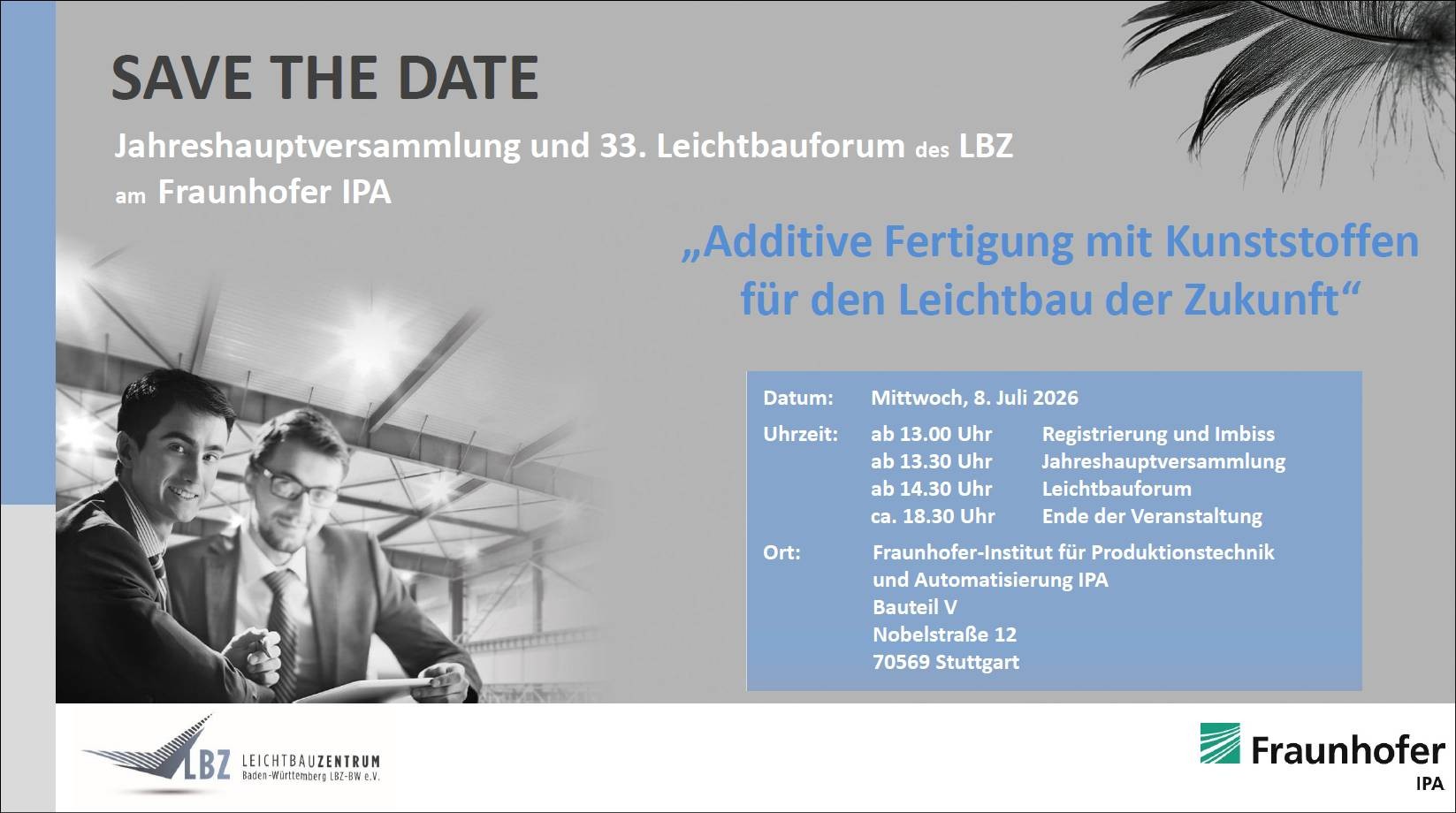 Jahreshauptversammlung & 33. Leichtbauforum des LBZ am 8.07.26 am Fraunhofer IPA, Stuttgart